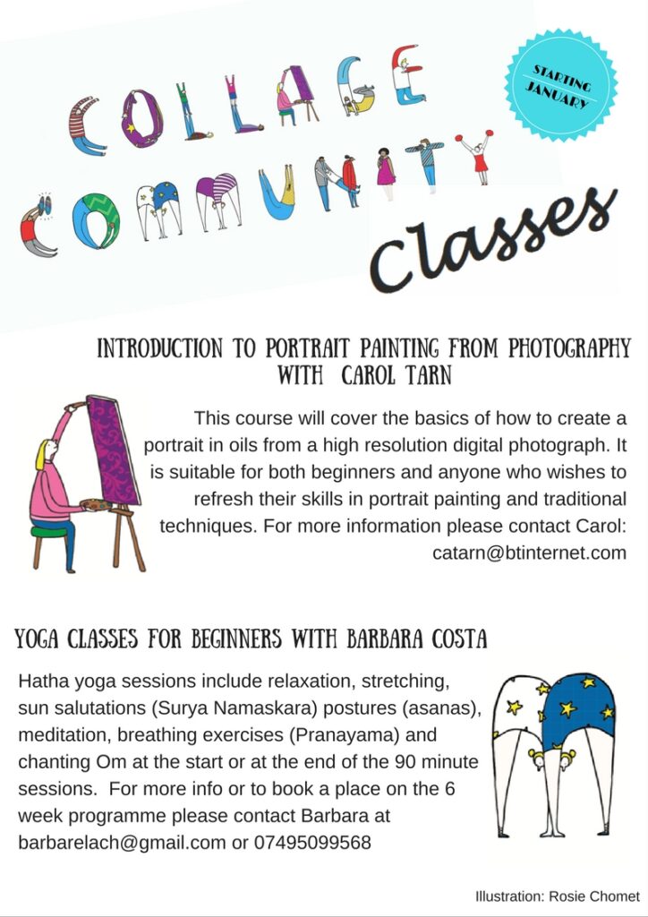 As part of new initiative Collage Arts have set up Collage Community with the aim of getting the community involved in classes run by local artists whilst offering reasonable prices. For more info on this initiative please contact Lauren via email: lauren@collage-arts.org or the artists directly: