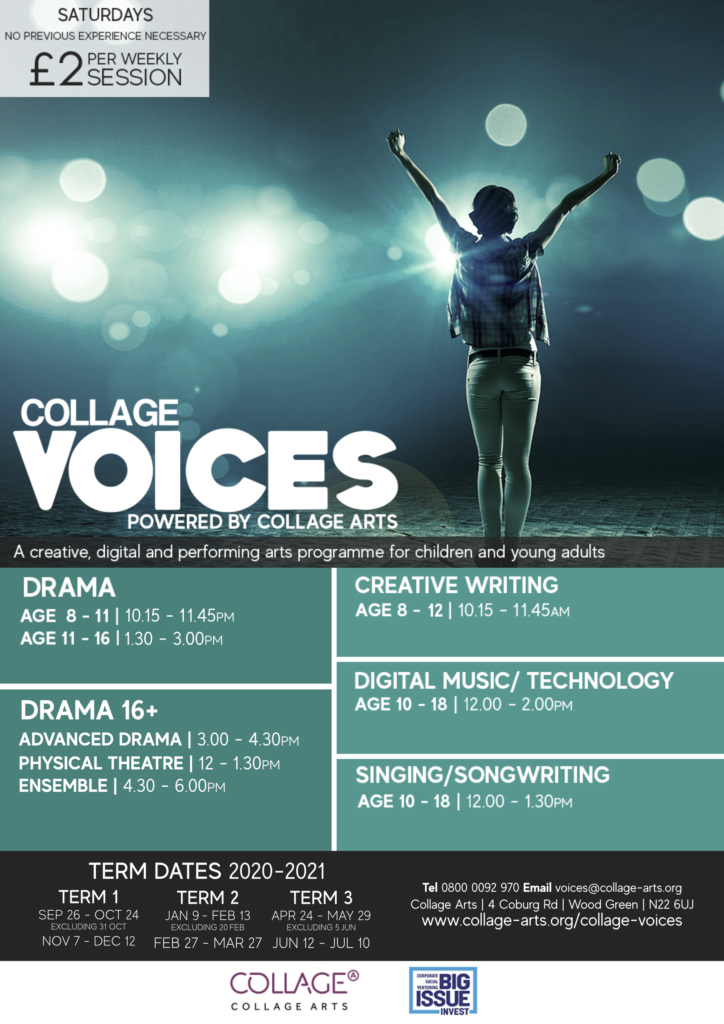Collage Voices is up and running again after the Christmas break! The flyer below shows the most up-to-date class times