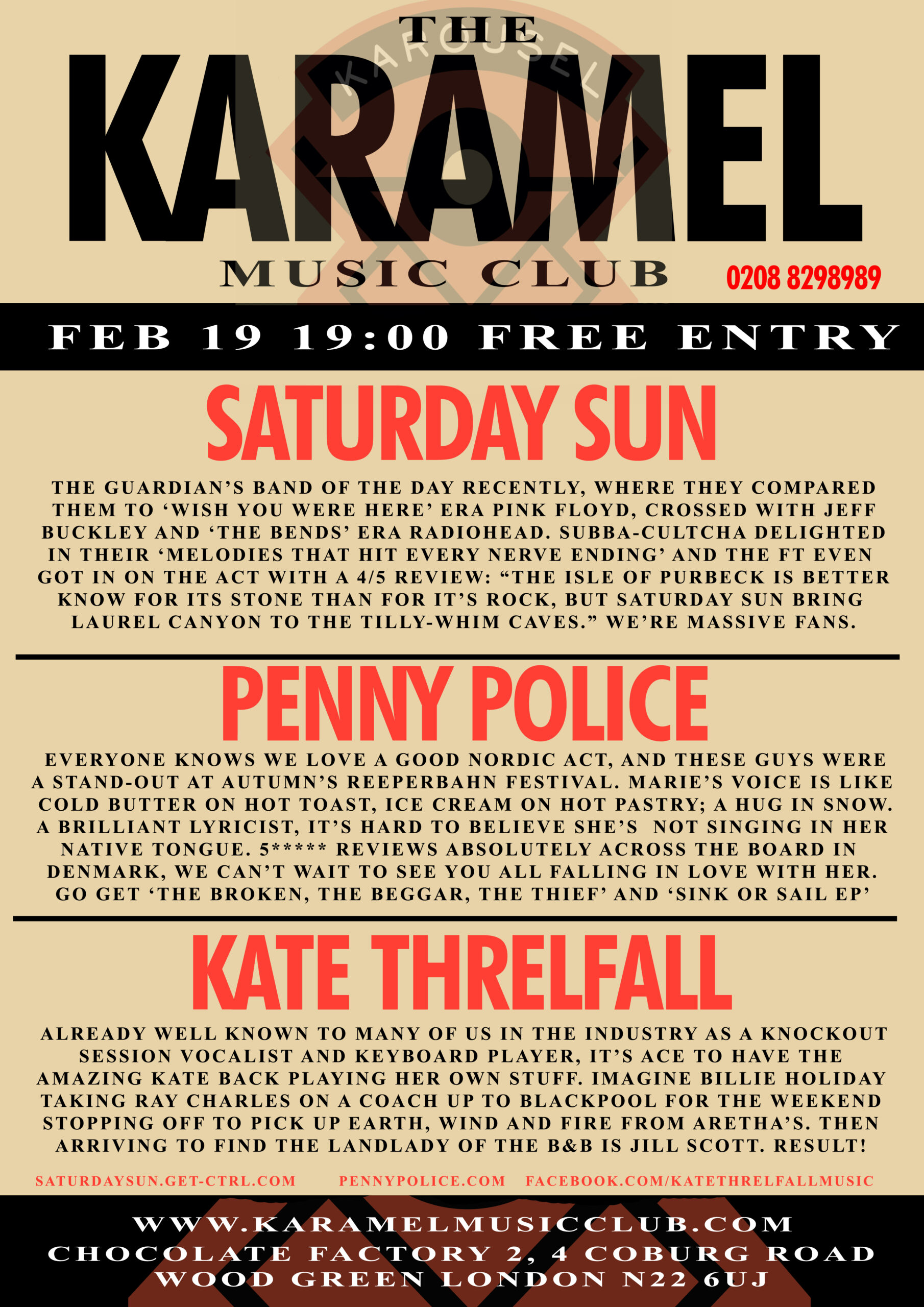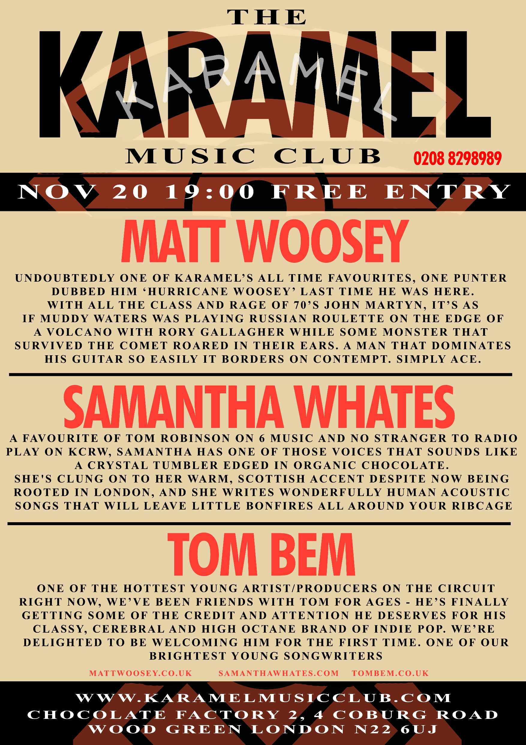 (Sunday Show at 6pm - tickets are on Musicglue.com/karamel)