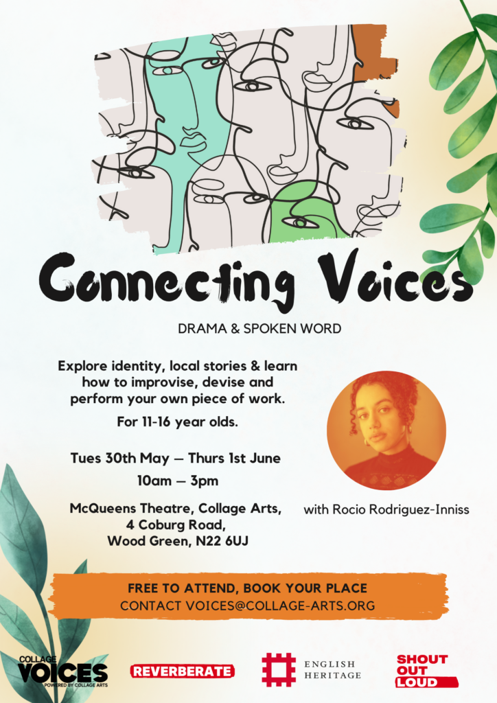 We are ever so excited to announce our FREE May half-term drama and spoken word workshops @collage.arts for 11-16 year olds with actor-writer Rocio Rodriguez-Inniss.