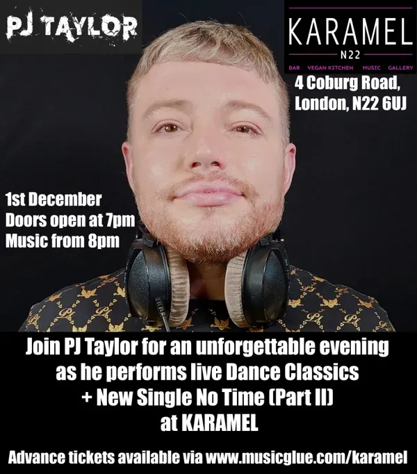 Join PJ Taylor for an unforgettable evening as he performs live Dance Classics + New single No Time (Part II) at Karamel.