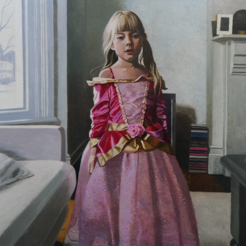 Sadie Lee’s paintings of artist David Hoyle and actress Rita Tushingham look haughtily into the gallery with attitude. Somehow being hung next to Mark Entwistle’s Clara makes her look all the more innocent. Whilst Lee presents us with figures against a white background Entwistle gives us lots of detail and content of the grand-looking interior around Clara.