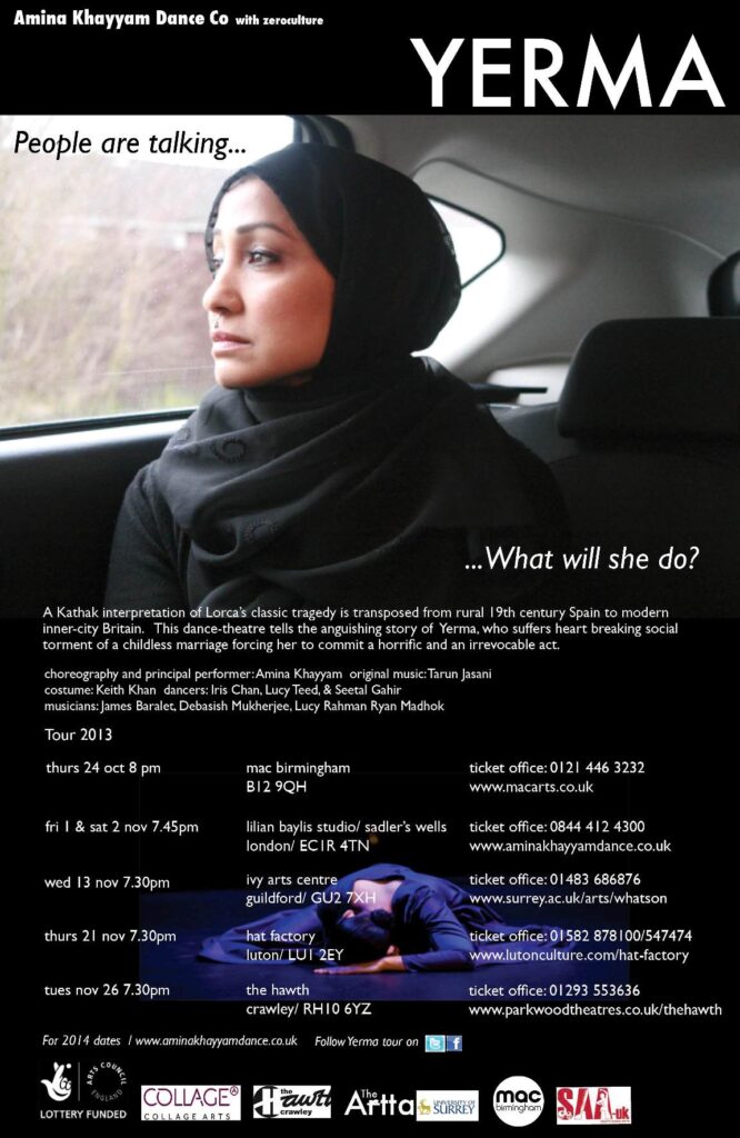 We are pleased to inform you about the Autumn Tour of our forthcoming co-production of YERMA with Amina Khayyam Dance Co.